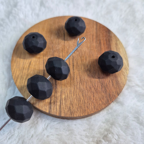 Black Faceted Orb 16mm Silicone Beads