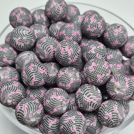 Check Me Out White 19mm Print Silicone Bead