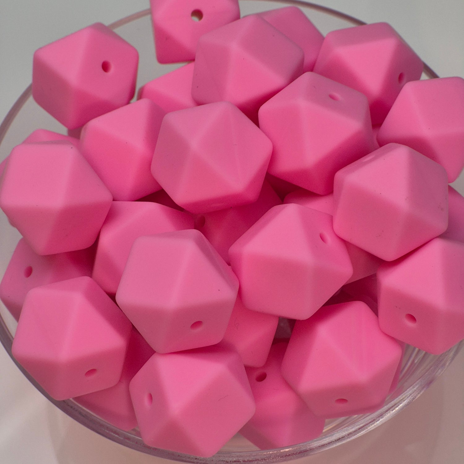 Pink 17mm Hexagon Solid Silicone Beads