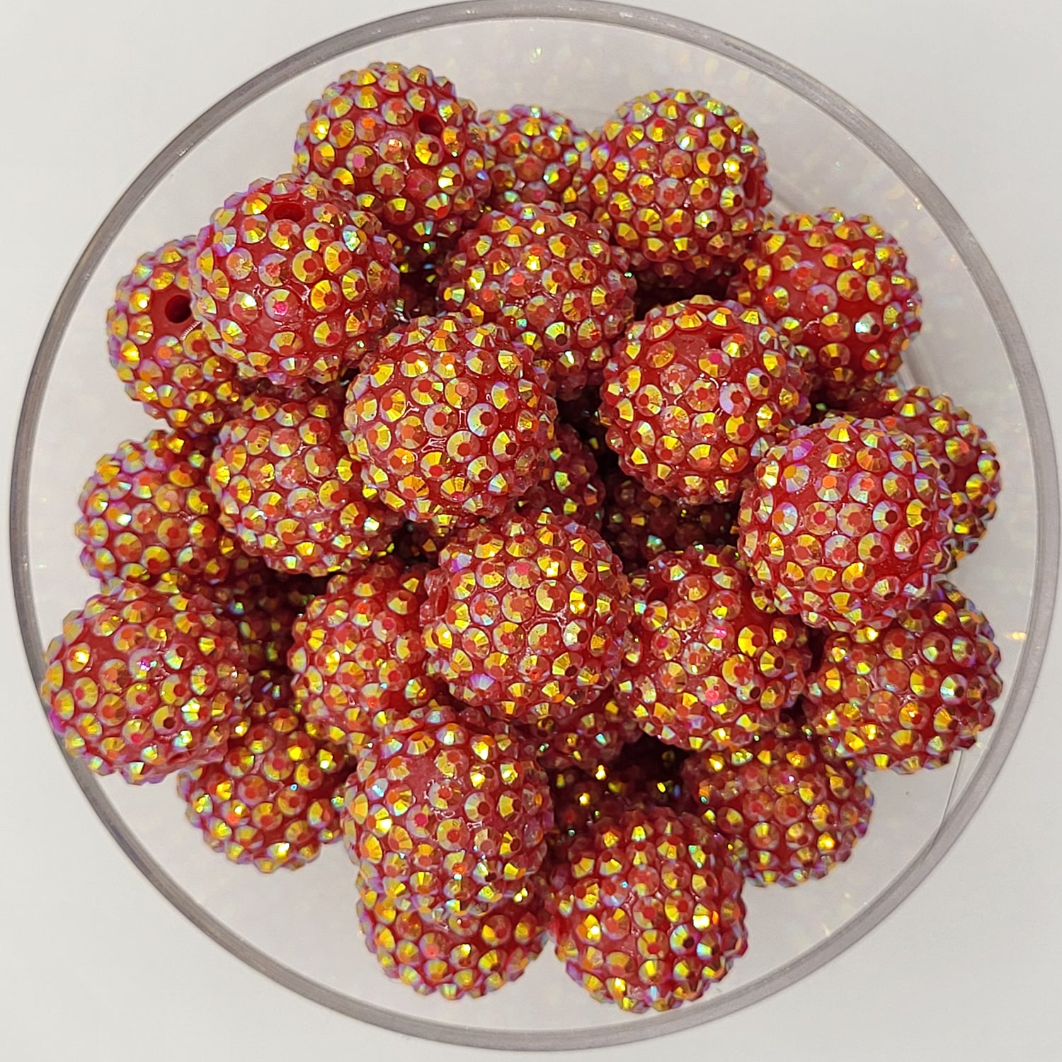 • 20mm round acrylic beads with rhinestone finish