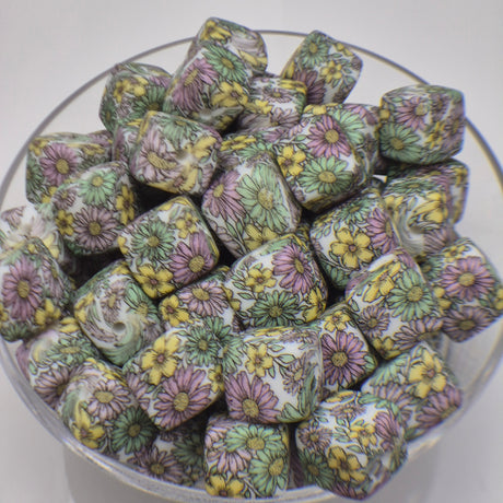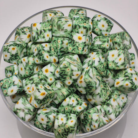 $053Unit price /UnavailableField of Daisies Cube Print Silicone Bead