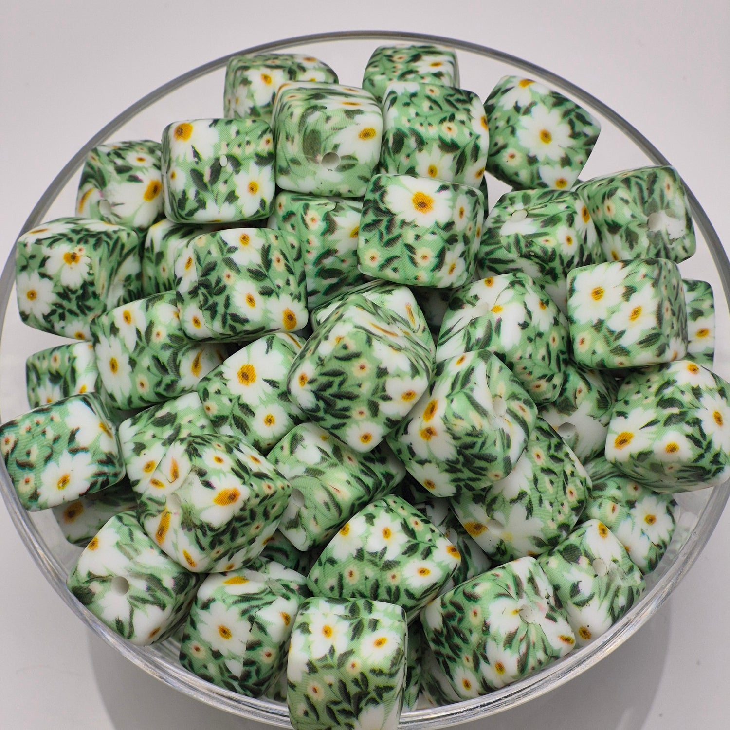 Field of Daisies Cube Print Silicone Bead