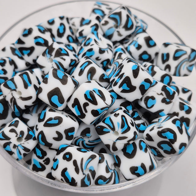 Snow Leopard Glam Cubes Print Silicone Beads