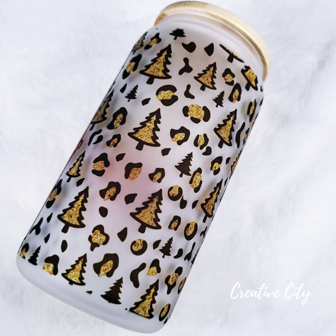 16oz frosted libby glass jar with bamboo lid and straw.